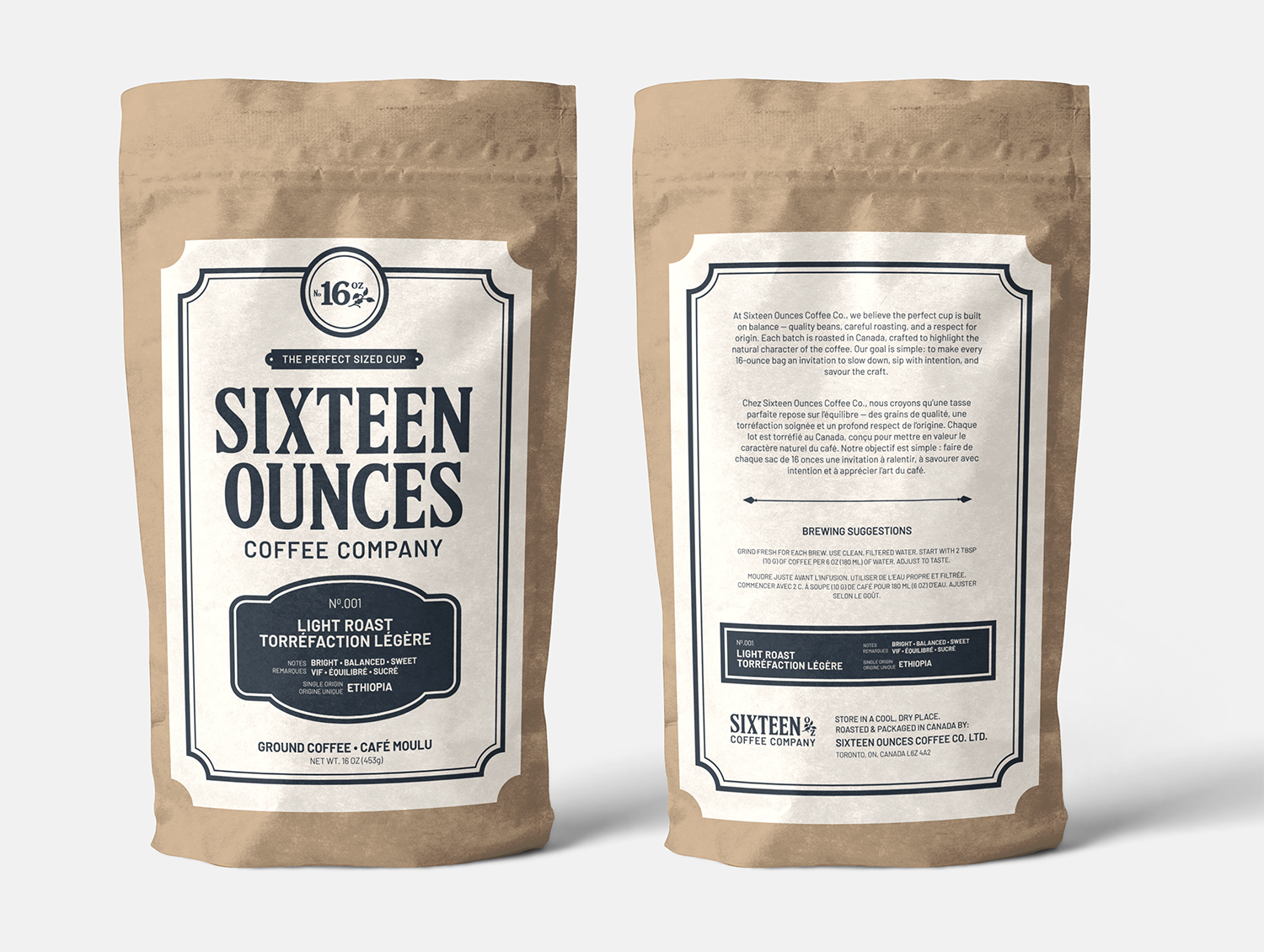 Sixteen Ounces Coffee Company is a specialty coffee roaster — a fictional brand created around the idea of the “perfect cup.” The goal was to create a distinctive coffee brand that combined vintage elegance with modern refinement.